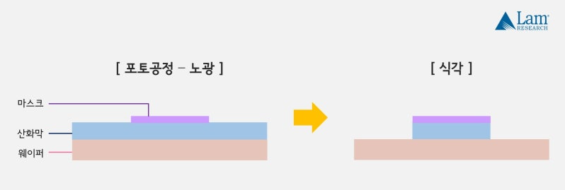 웨이퍼에 회로를 그려 넣는 포토 공정이 끝나고, 반도체 패턴 부분 외 필요한 산화막을 제거(에칭)하는 공정이다.