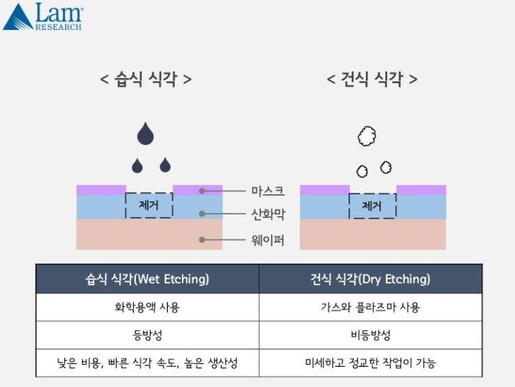 식각 공정은 식각을 위해 이용하는 물질에 따라 크게 두 가지로 나뉜다.