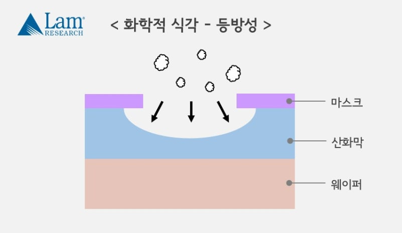 화학 용액을 이용한 습식 식각은 모든 방향의 식각 속도가 같은 등방성을 지닌다.
